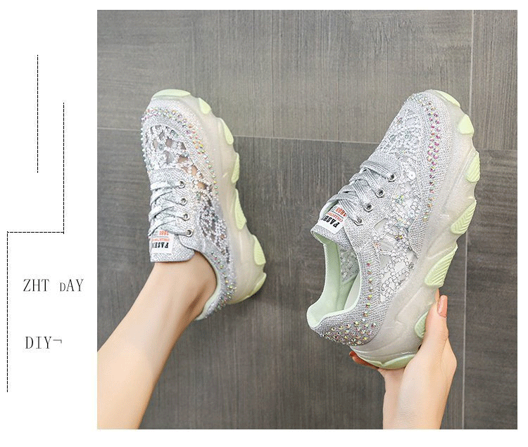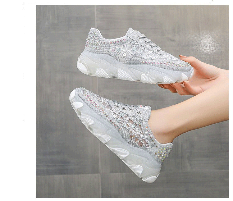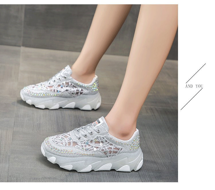 حذاء سنيكرز لامع مزين بالدانتيل الرومانسي ذو النعل السميك من الماركة الإيطالية