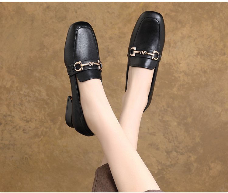 حذاء جلد سهل الارتداء إيطالي كلاسيكي بمقدمة الحذاء المربعة والسلسة المعدنية